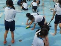 これから来るギラギラした夏に向け、5・6年生がプール掃除をしました。水しぶきが舞い、歓声が上がるたびに「ケガをしないで!」とヒヤヒヤでしたが。