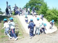 四季を感じる体験学習として公園を選び、1年生が公園探検に行ってきました。遊具で遊びながら生き物や植物の観察を行い、四季の変化を感じていきます。